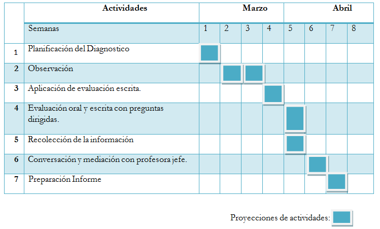 - Carta Gantt que indique periodos y actividades que desarrollaran en el diagnóstico.